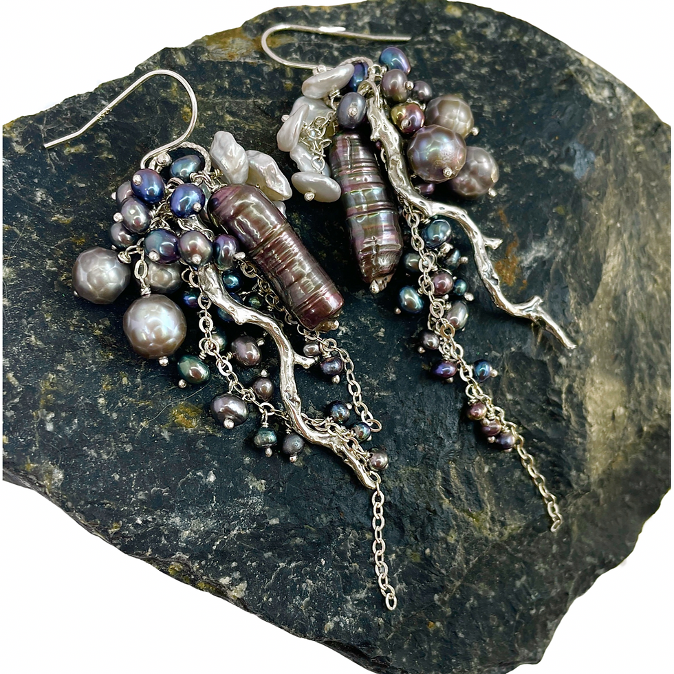 Pearl coral long cluster earrings, a beautiful addition to any jewelry collectio